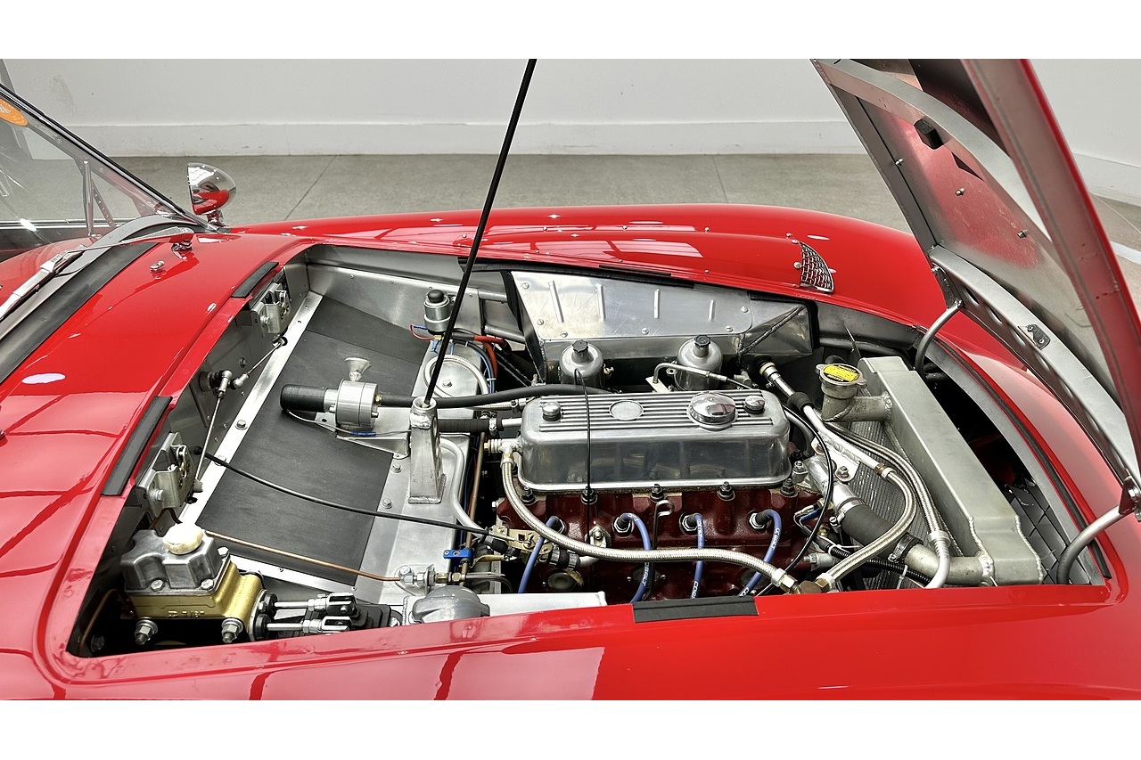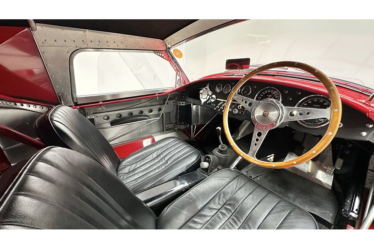 Finished in a deep, lustrous shade of racing red, the paintwork accentuates the body’s elegant, flowing lines. Under the bonnet, a finely tuned MGB engine delivers spirited and tractable performance—made all the more thrilling by the car’s lightweight aluminium construction and twin stainless-steel exhausts, which emit a satisfyingly throaty note under acceleration.